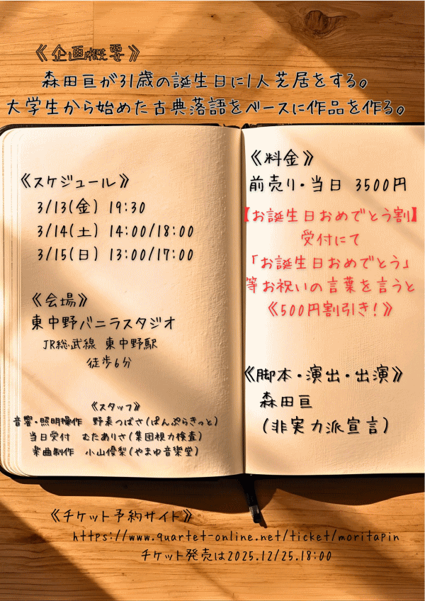 オムニバス型一人芝居「〇〇の話をしよう」 |