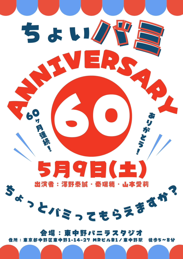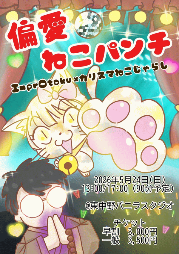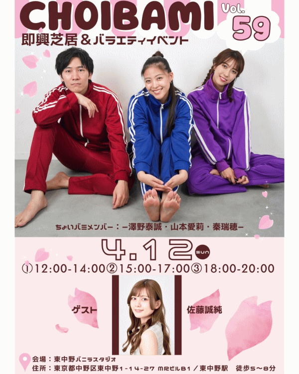 4/11 演劇公演 4/12 ちょいバミ59 4/24 演劇ユニットまっしろ 第1回公演「またね、」 5/2 朗読劇「涙が出そうなくらい、生きろ」 5/9 ちょいバミ60 5/24 「偏愛ねこパンチ」 5/29 ぽいぽいスコップ 第3回本公演『おもかげ 』 6/19 6/26 MERRY VARY PARTY × みちくさ オムニバス型一人芝居「〇〇の話をしよう」 7/7 藍澤慶子一人芝居2 『迷妄曲論』 7/18 劇団マカナーレ オムニバス公演 『コメディの盛り合わせ』